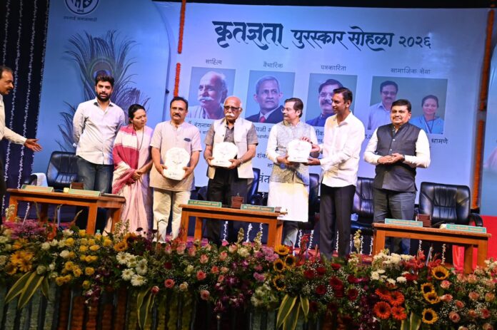 नेवासा तालुक्यातील सोनई येथील यशवंत सामाजिक प्रतिष्ठानच्या वतीने जेष्ठ पत्रकार एबीपी माझाचे राजीव खांडेकर,साहित्यिक डॉ. रंगनाथ पठारे, माउली सेवा प्रतिष्ठानचे डॉ. सुचेता व डॉ. राजेंद्र धामणे यांना ‘कृतज्ञता’ पुरस्काराने सन्मानित करण्यात आले. पुरस्कारासाठी निवड झालेले डॉ. संदीप वासलेकर जागतिक परिषदेमुळे उपस्थित राहू शकले नाही.