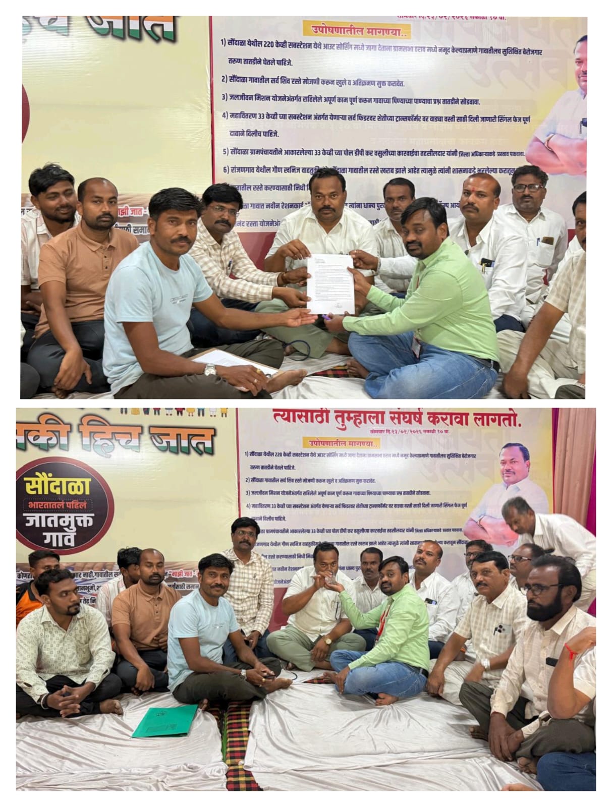 सरपंच शरद आरगडे यांच्या नेतृत्वाखाली सौंदाळा ग्रामस्थांनी दि. २३ फेब्रूवारी रोजी सकाळी ११ वाजता महादेव मंदिर देवस्थान सभामंडपात बेमुदत आमरण उपोषण सूरु केले होते.