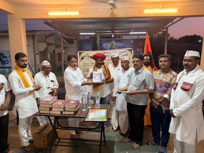 सरपंच शरद आरगडे. जेष्ठ मार्गदर्शक कॉ.बाबा आरगडे व उपसरपंच भिवसेन गरड व ग्रामपंचायत सदस्य यांचा यावेळी महात्मा जोतिबा फुले यांची पगडी घालुन तुकाराम महाराजांची गाथा देऊन सत्कार करण्यात आला.