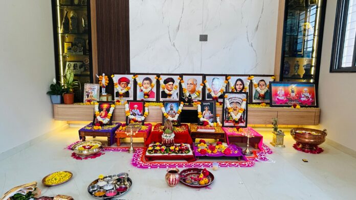 शनिवार दि. १४ मार्च २०२६ रोजी सत्यशोधक पद्धतीने सत्यशोधक विधीकर्ते श्री साळोबा पांडव यांच्या मार्गदर्शनाखाली हा गृहप्रवेश संपन्न झाला. कार्यक्रमाची सुरुवात क्रांतिसूर्य महात्मा फुले लिखित ‘सार्वजनिक सत्यधर्म’ या ग्रंथातील “सत्य सर्वांचे आदिघर” या कवनाने करण्यात आली. त्यानंतर सत्यशोधक पद्धतीने पूजा विधी पार पडला. गृह प्रवेश पूजेकरिता भारतीय संविधानाची प्रत, डॉ.बाबासाहेब आंबेडकर, महात्मा ज्योतिराव फुले, क्रांतीज्योती सावित्रीबाई फुले, सत्यशोधक कृष्णराव भालेकर ,दीनमत्रकार मुकुंदराव पाटिल, श्रीविठ्ठल, संत ज्ञानेश्वर महाराज,संत तुकाराम महाराज,संत सावता माळी व पाटील कुटूंबियांचे वारसांच्या प्रतिमा ठेवण्यात आल्या होत्या.