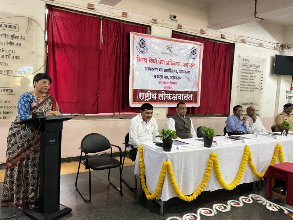 जिल्हा विधी सेवा प्राधिकरण, बार असोशिएशन आणि सेंट्रल बार असोशिएशन यांचे संयुक्त विद्यमाने शनिवार (दि. १३) राष्ट्रीय लोक न्यायालयाचे आयोजन जिल्हा न्यायालय, अहिल्यानगर तसेच सर्व तालुका न्यायालयांमध्ये करण्यात आले होते. राष्ट्रीय लोकन्यायालयाचे उद्घाटन ज्येष्ठ पक्षकारांच्या हस्ते रोपट्यास पाणी घालून करण्यात आले. त्याप्रसंगी प्रमुख जिल्हा व सत्र न्यायाधीश अंजू शेंडे अध्यक्षस्थानावरून बोलत होत्या.