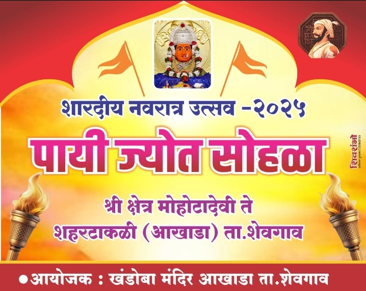 माय महाराष्ट्र न्यूज:शेवगाव तालुक्यातील शहरटाकळी येथे नवरात्र उत्सव निमित्ताने मोहोटादेवी येथून सोमवारी पायी ज्योत आणण्यात येणार आहे या पायी ज्योत घेऊन येण्यासाठी युवक मोठ्या संख्येने सहभागी होतात. दरवर्षी मोहटादेवी याठिकाणाहुन हे युवक पायी ज्योत घेऊन येतात. येथील खंडोबा मंदिर आखाडा परिसरातील युवक नेहमी धार्मिक कार्यक्रम मध्ये अग्रभागी असतात. याचबरोबर सामाजिक क्षेत्रात नेहमी मदत केली जाते.