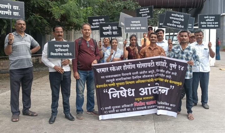 माय महाराष्ट्र न्यूज: पुणे शहरातील खराडी भागातील परमार स्केअर हौसींग सोसायटी खराडी येथील भर पावसाळ्यात पाणीपुरवठा अधिकारी यांनी कुठली ही सूचना सोसायटीला न देता पाणी पुरवठा बंद केला . आज जिल्हाधिकारी कार्यालय येथे आंदोलन केले सोसायटी मधील लोकांना पाण्याची मोठी अडचण निर्माण झाली आहे .बंड गार्डन पाणीपुरवठा अधिकारी नितीन जाधव यांना निलंबित करा व सोसायटीला लवकरात लवकर पाणी द्या अन्यथा 8 दिवसात आम्ही जिल्हाधिकारी कार्यालय येथे आमरण उपोषण करू या मध्ये मनपा प्रशासन यांनी लक्ष देऊन पाण्याचा प्रश्न सोडवावा असे सोसायटी चे अध्यक्ष दिगंबर बंडु तात्या पठारे यांनी बोलतांना सांगितले .