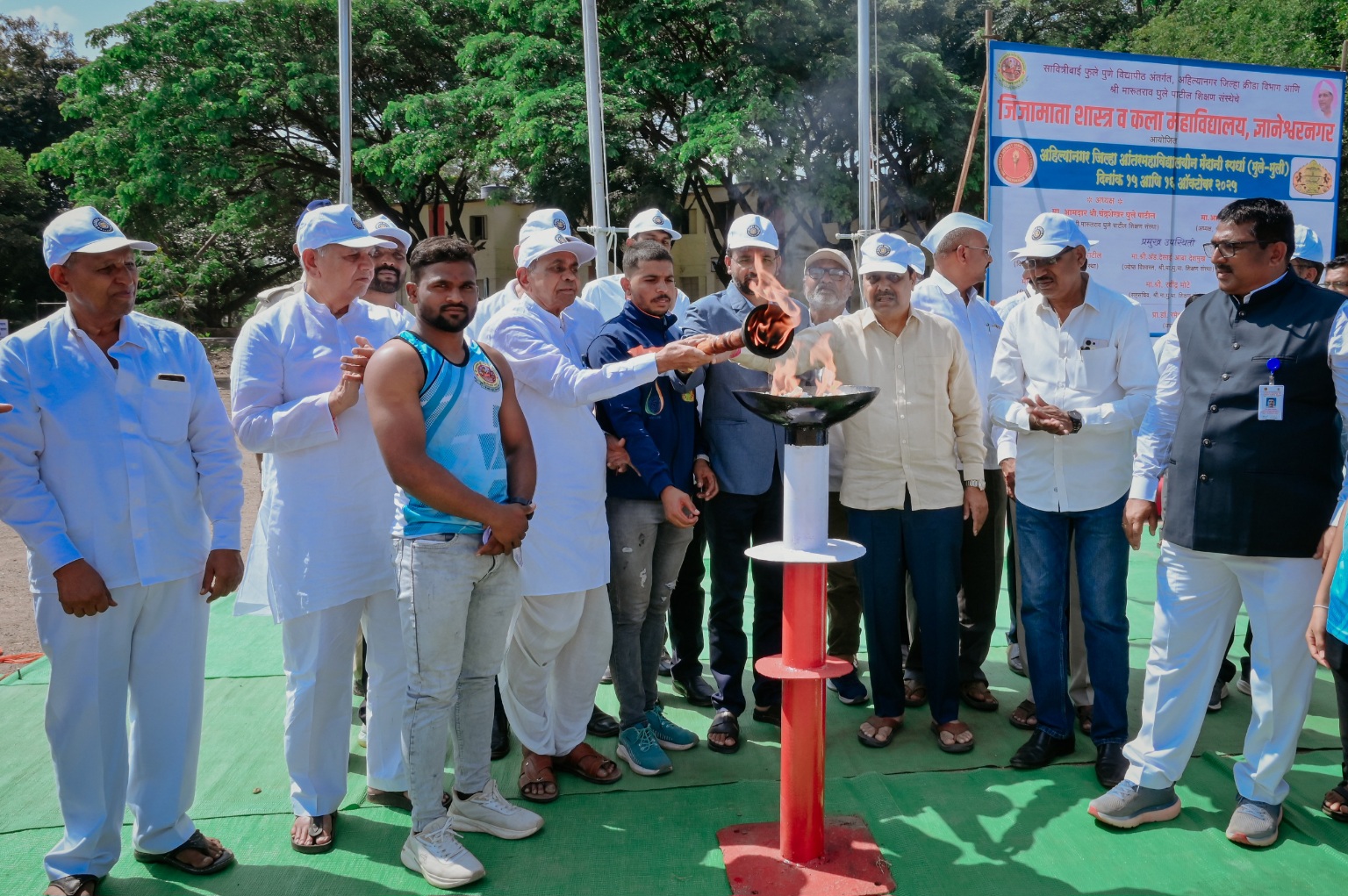 नेवासा तालुक्यातील भेंडा येथील जिजामाता शास्त्र व कला महाविद्यालयात सावित्रीबाई फुले पुणे विद्यापीठाच्या अहिल्यानगर जिल्हा आंतरमहाविद्यालयीन मुले-मुली मैदानी स्पर्धेचे श्री.घुले यांचे हस्ते क्रीडा ज्योत प्रज्वलित करून उद्घाटन करण्यात आले,त्यावेळी बोलत होते. विश्वस्त